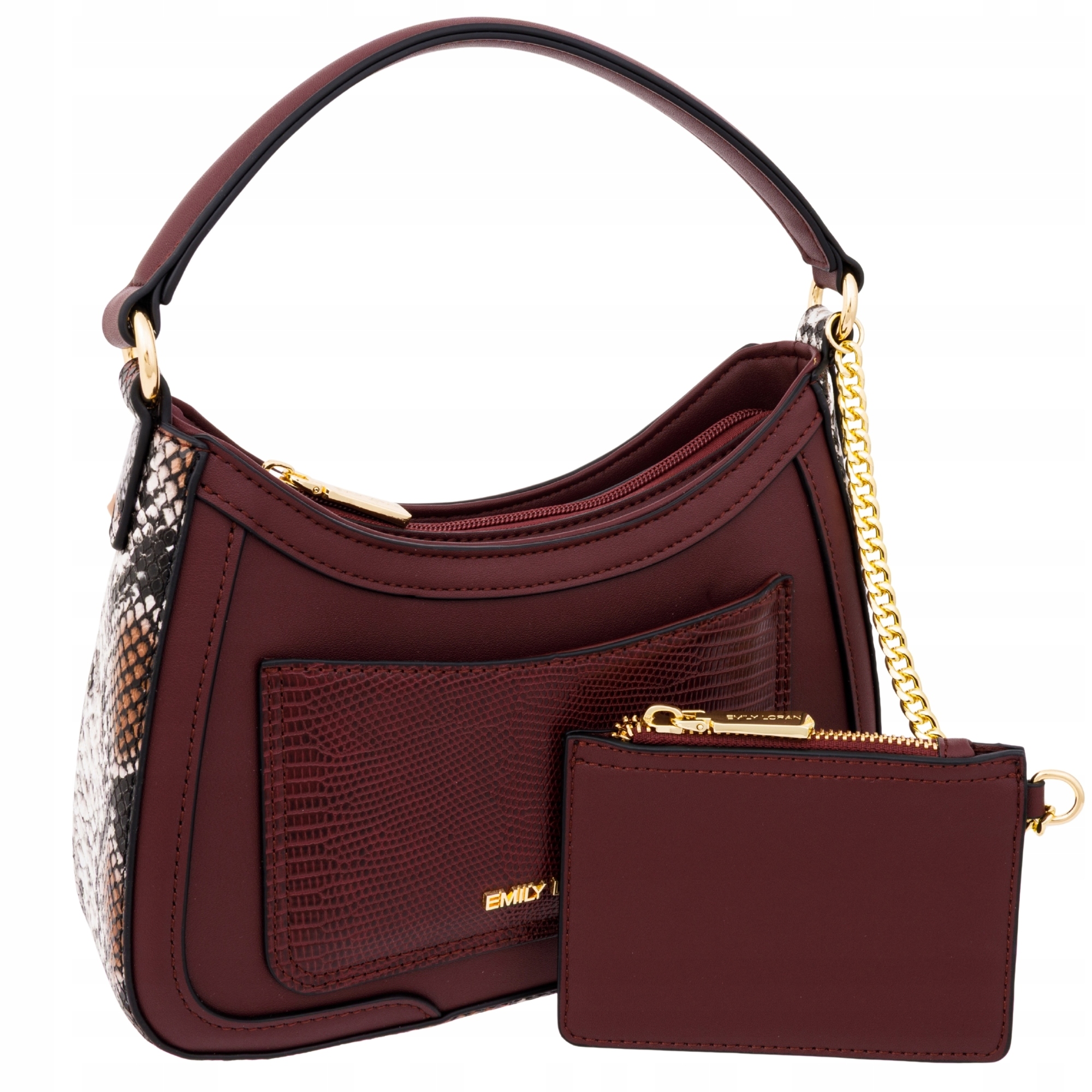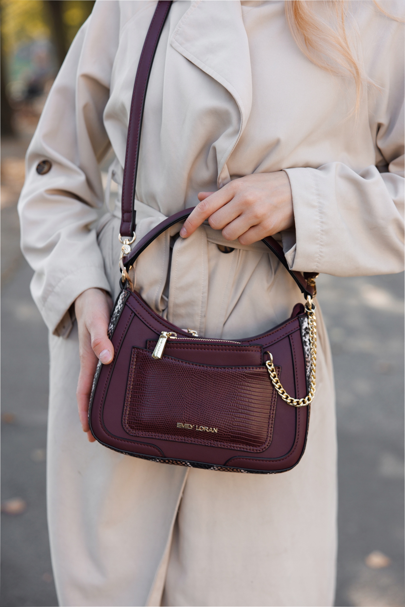 Elegante Emily Loran Damentasche in Burgunderrot mit goldenen Schlangenhautdetails