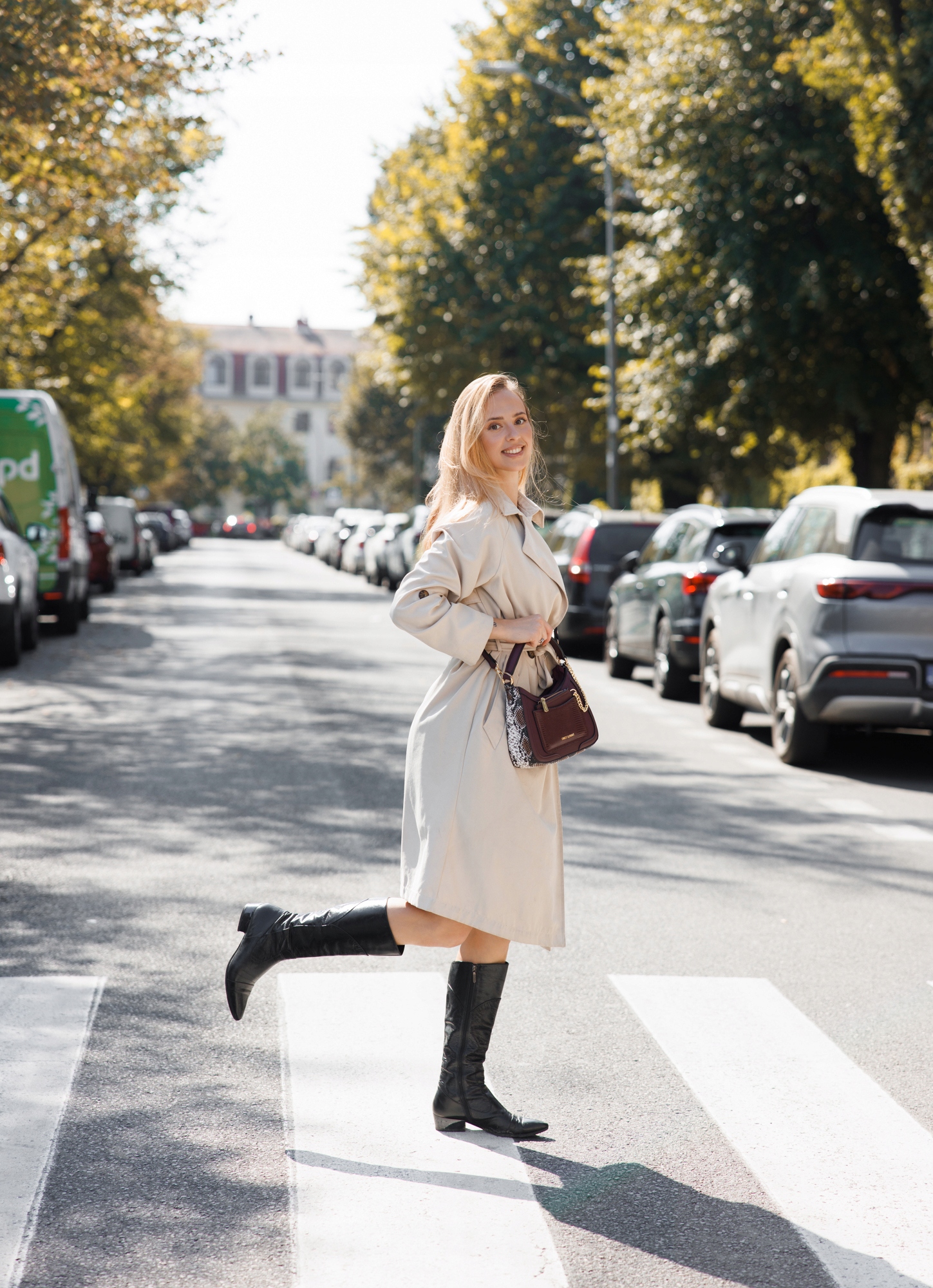 - Goldverzierungen (Kette, Reißverschlüsse, Schnallen) verleihen ihr einen eleganten Stil,