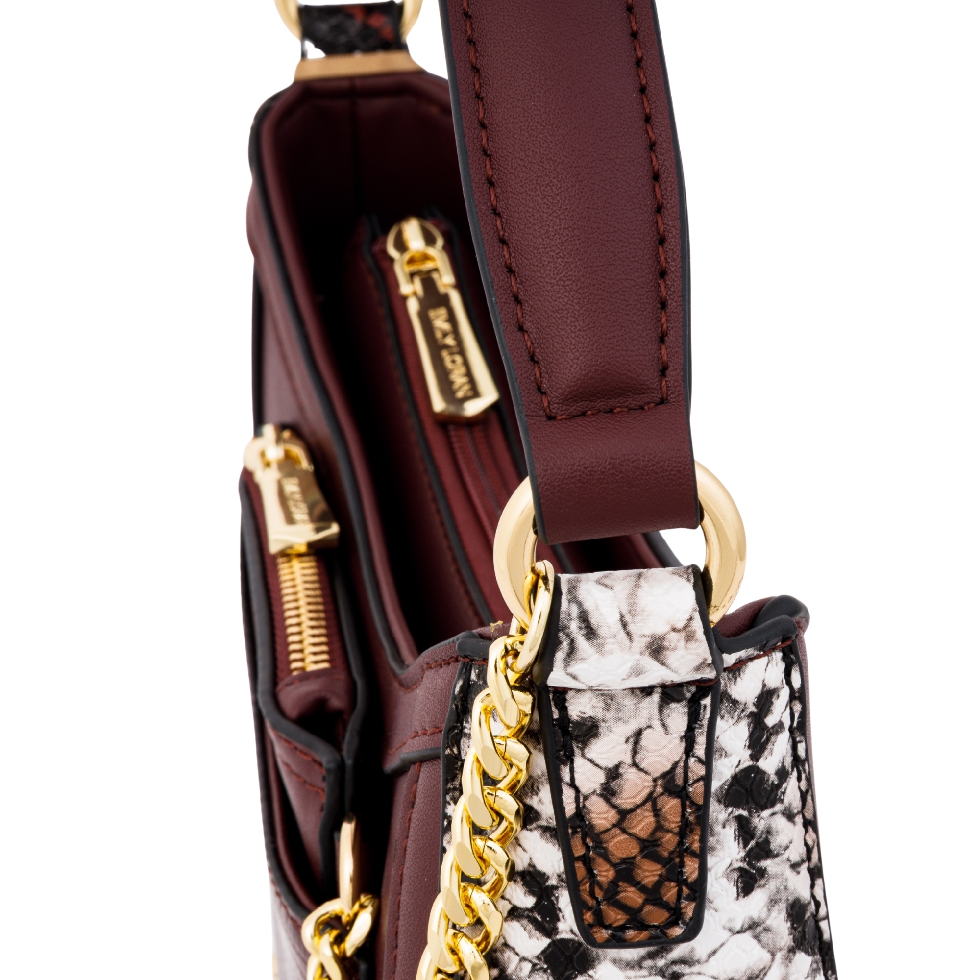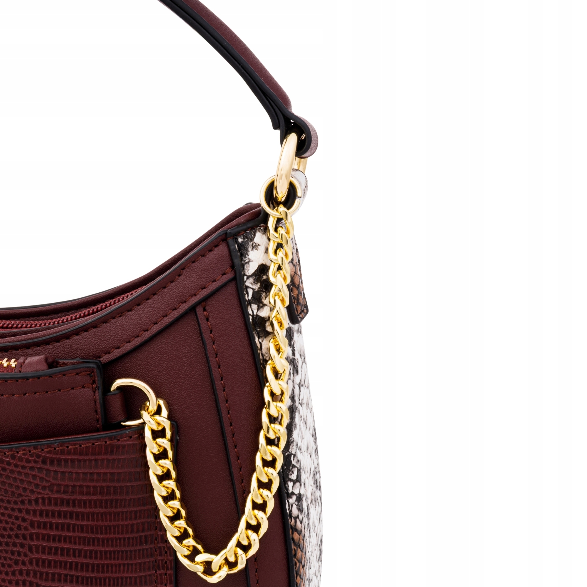 Damenhandtasche Emily Loran Kollektion kastanienbraun mit Krokodilmuster und Goldkette - elegante Posttasche mit zusätzlichem Beutel