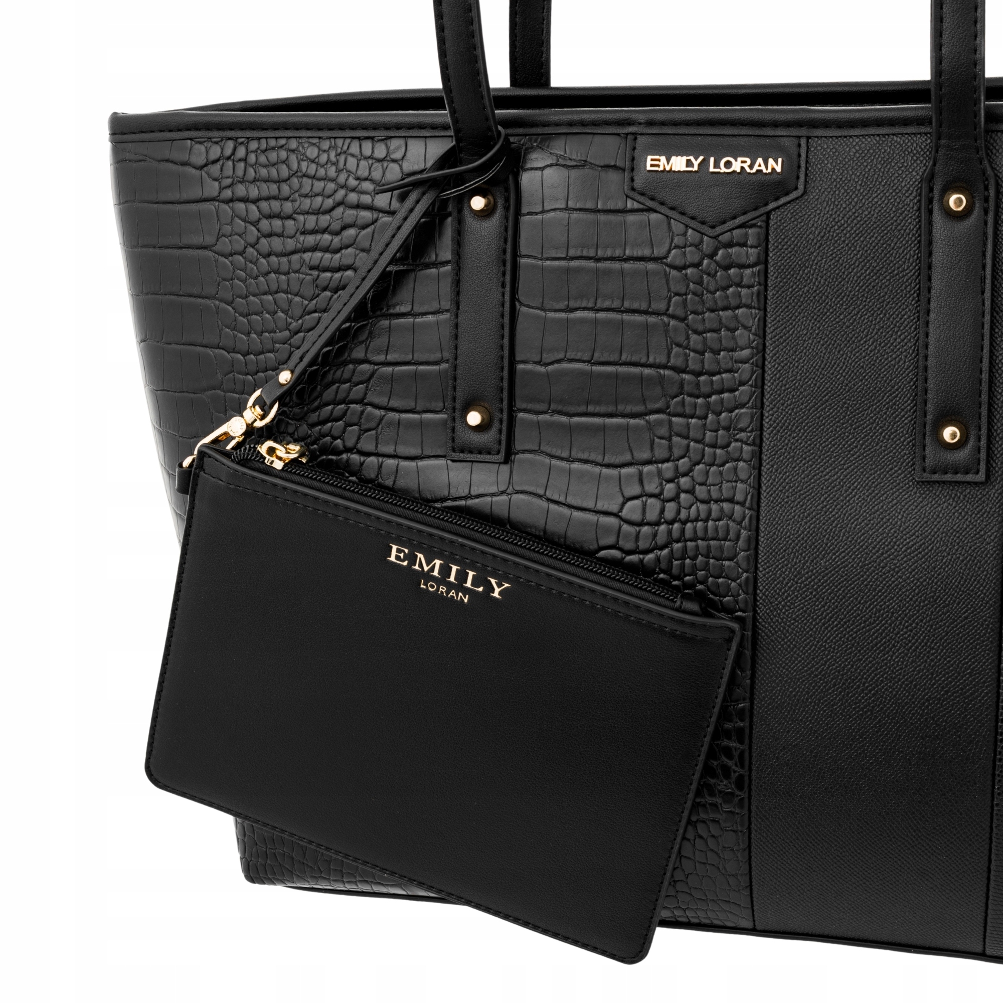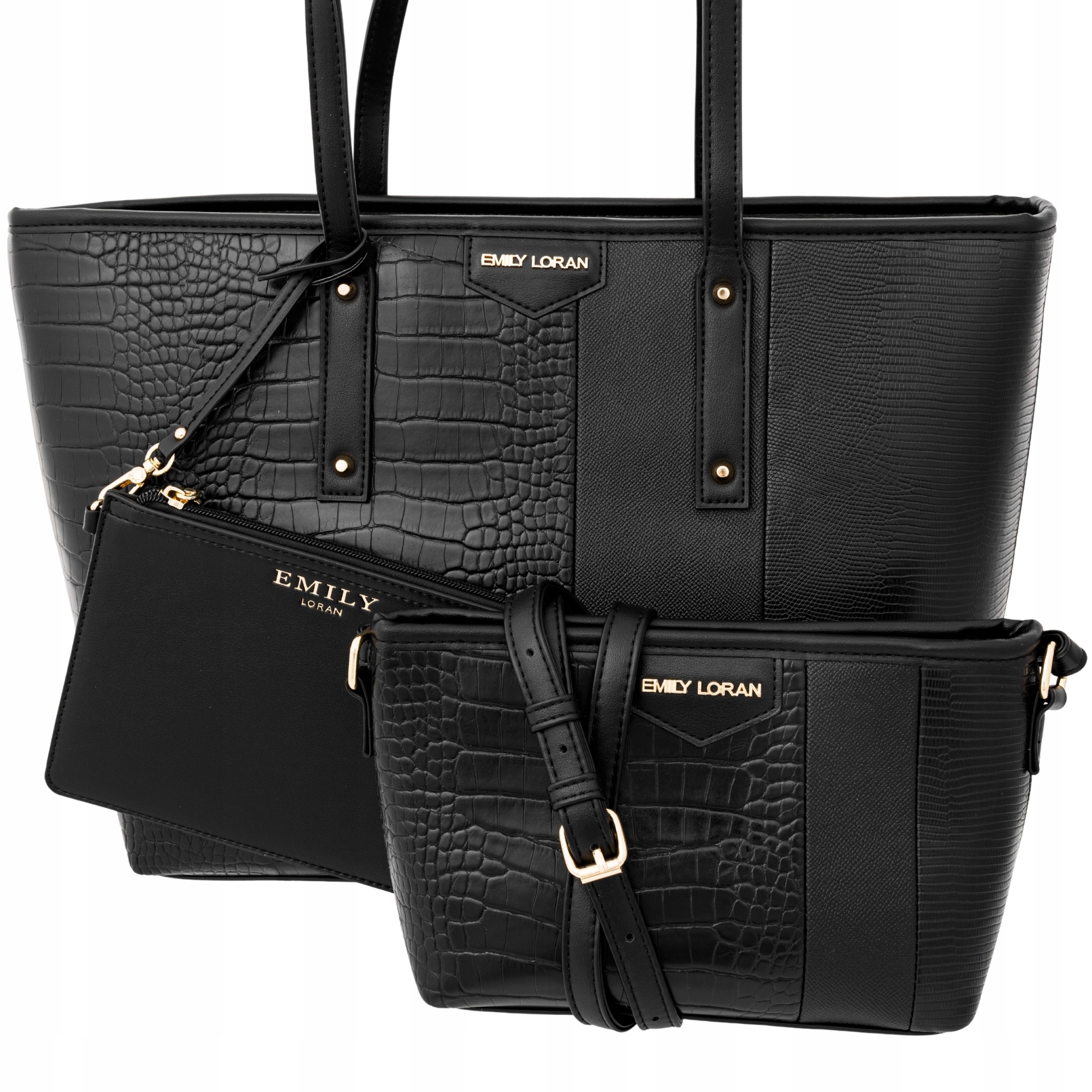 Elegantes EMILY LORAN Damenhandtaschenset - klassisch schwarz, 3-teilig (Shopper, Postbag, Clutch)