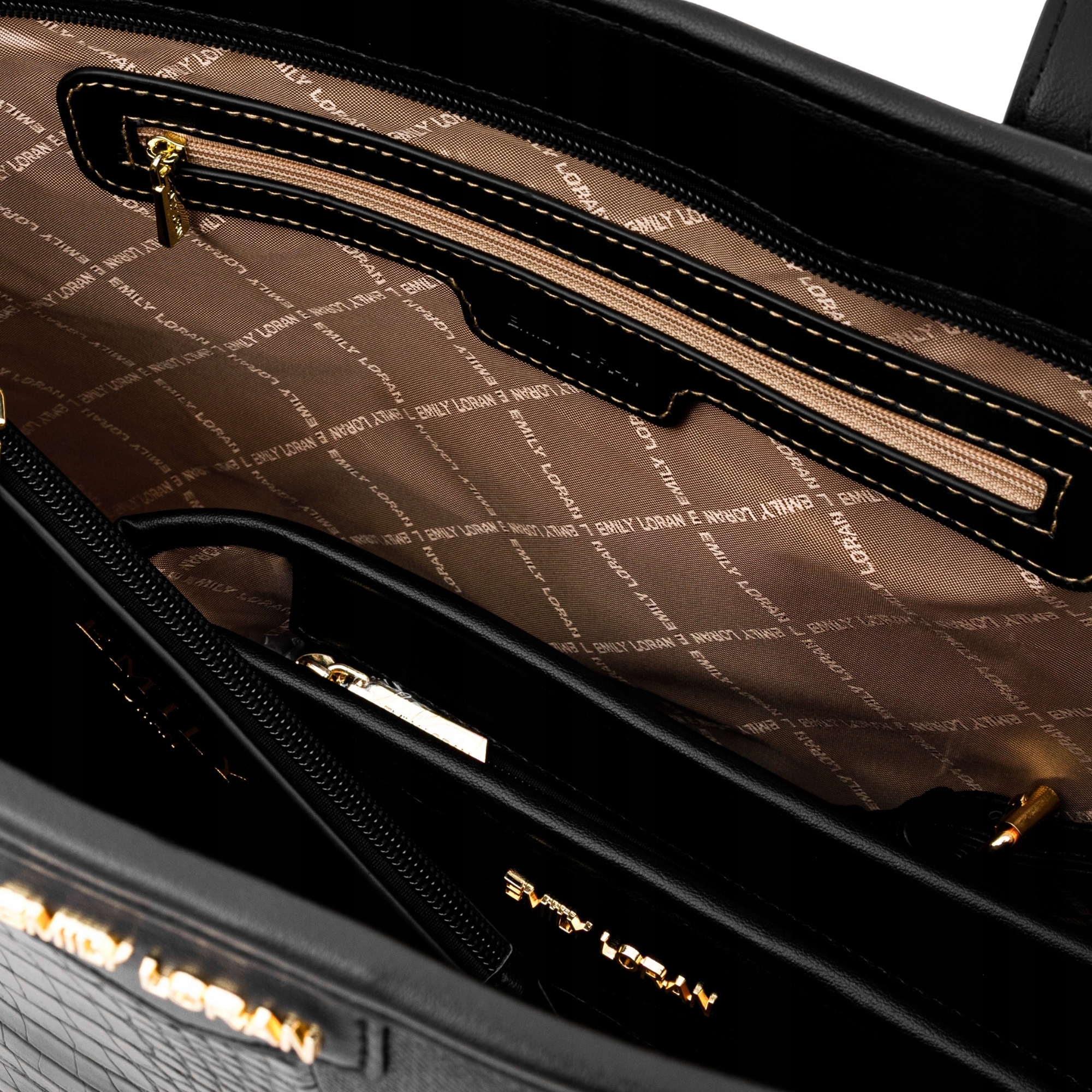 - Shopper Bag - eine große Tasche mit geräumigem Innenraum, ideal zum Einkaufen, für die Arbeit oder die Universität. Sie zeichnet sich durch eine elegante Kombination aus Krokodillederimitation und glatter Oberfläche aus. Im Inneren befinden sich ein praktisches Fach und Taschen für kleine Gegenstände.