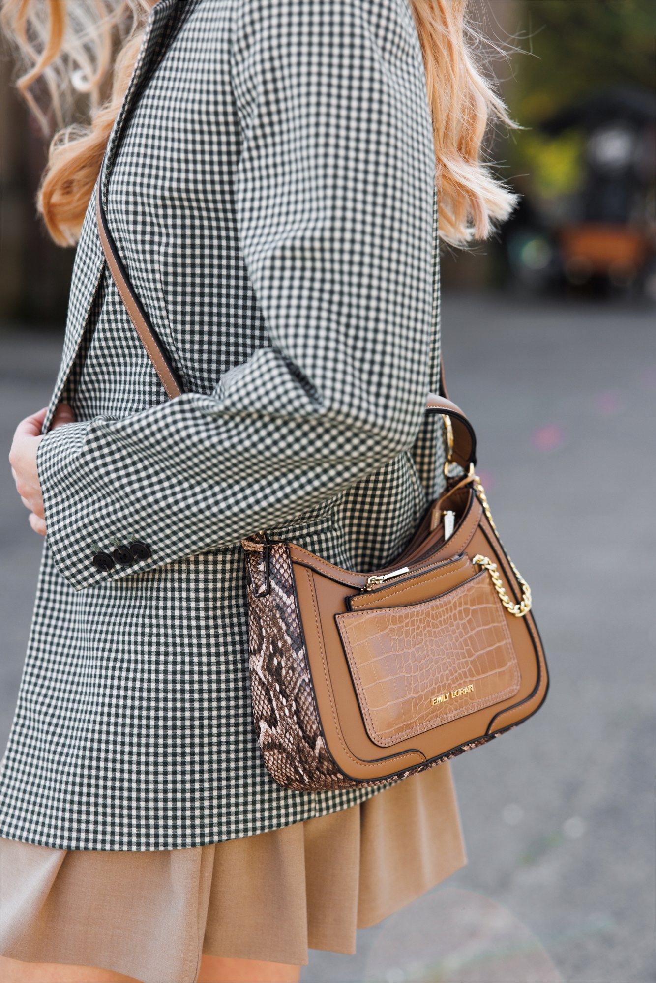 Emily Loran braune Damenhandtasche mit Krokodilmuster und Kette