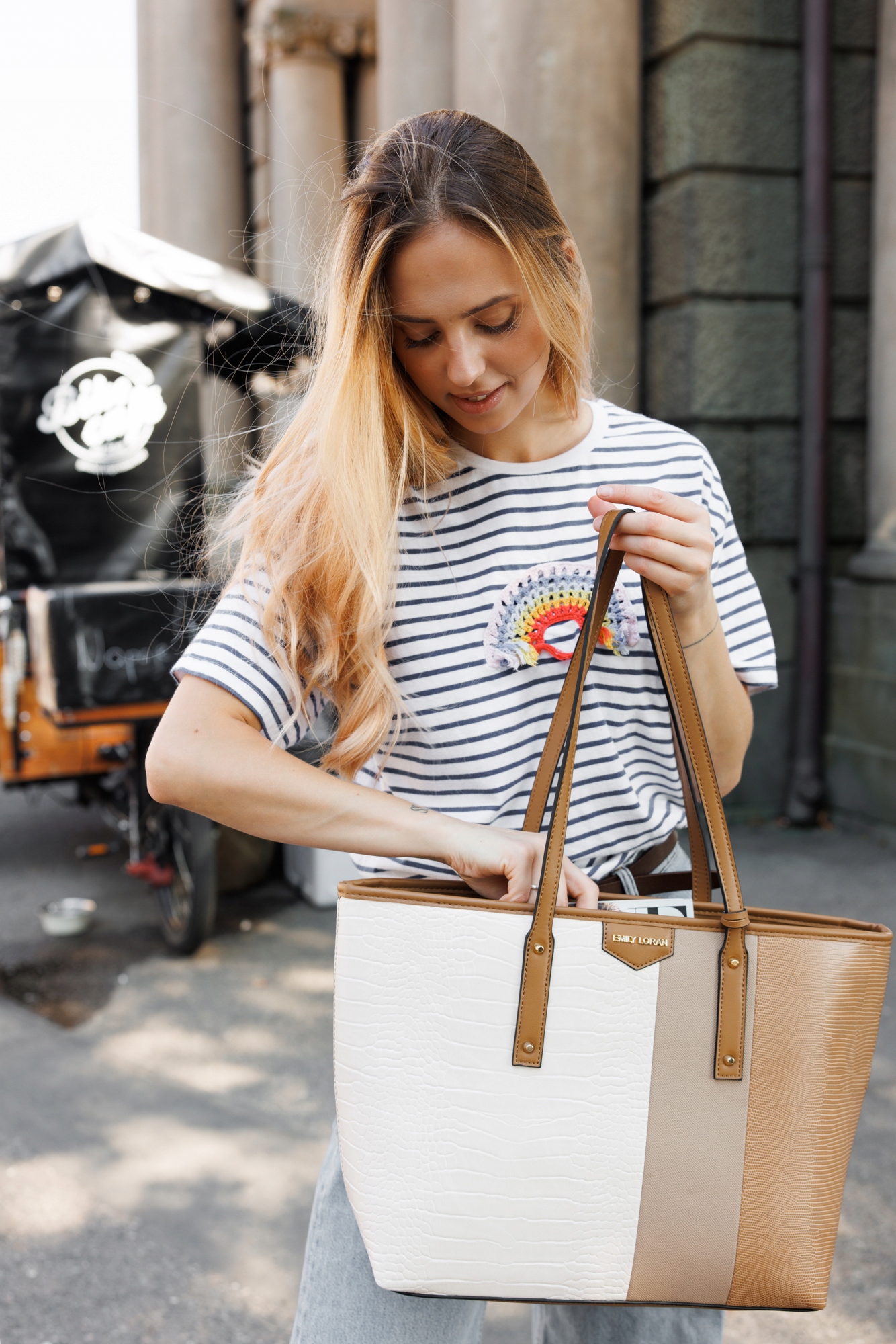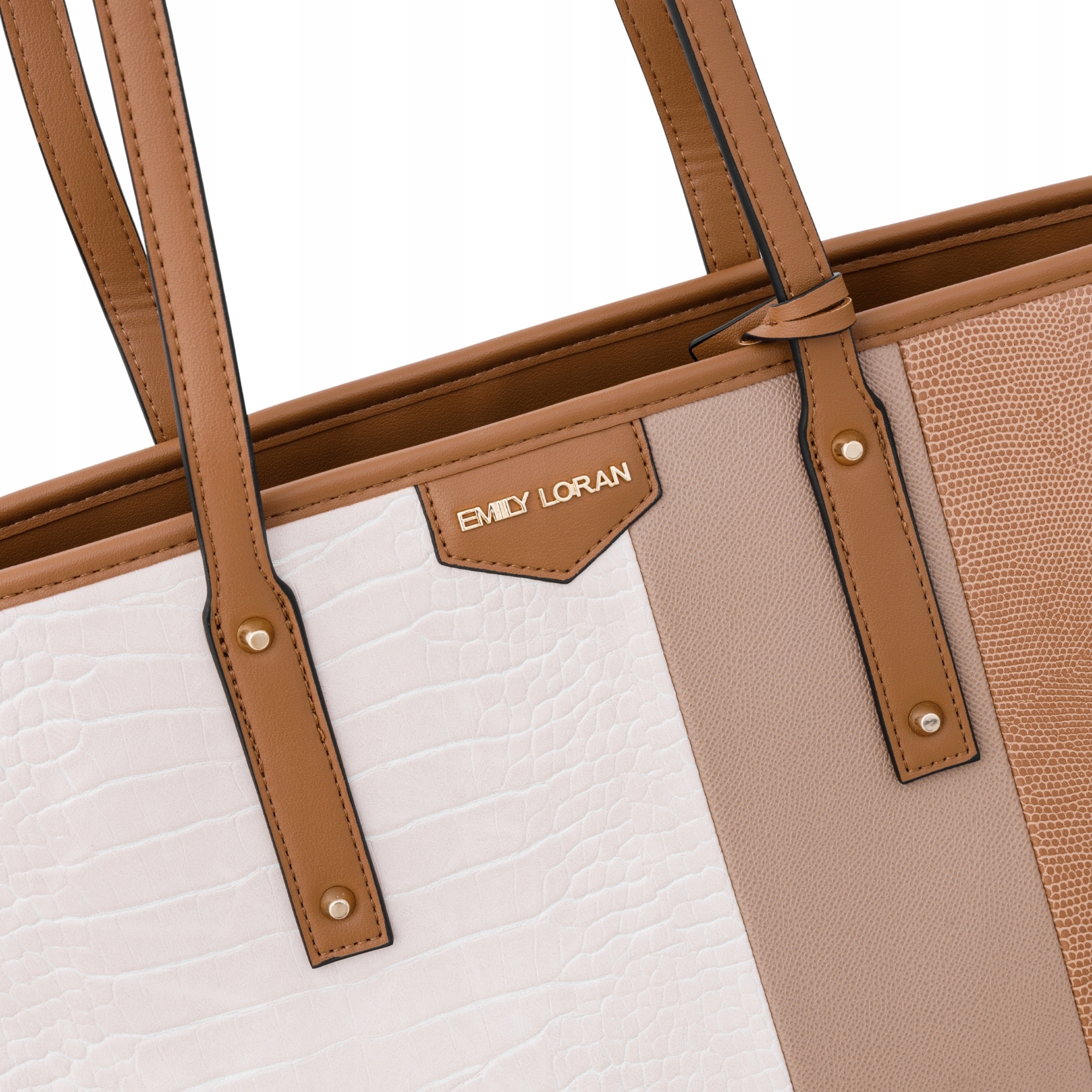 Entscheiden Sie sich für zeitlose Eleganz und Funktionalität mit dem Emily Loran 3in1 Handtaschenset in einer trendigen Kombination aus Beige, Weiß und Karamell. Es ist für Frauen, die Stil, Komfort und die Möglichkeit, Accessoires zu jedem Anlass zu kombinieren, schätzen.