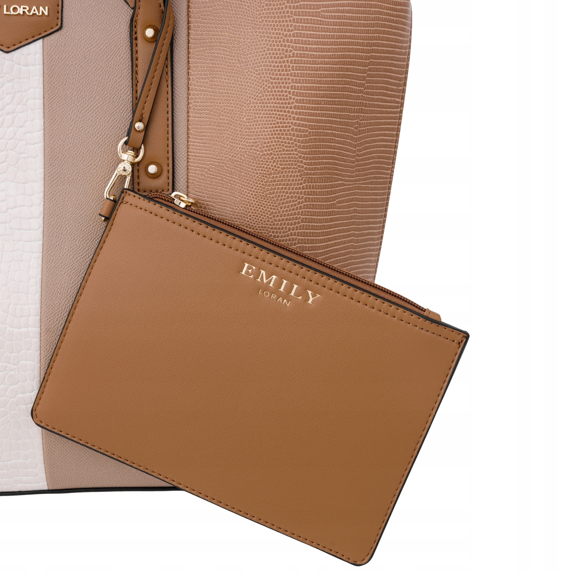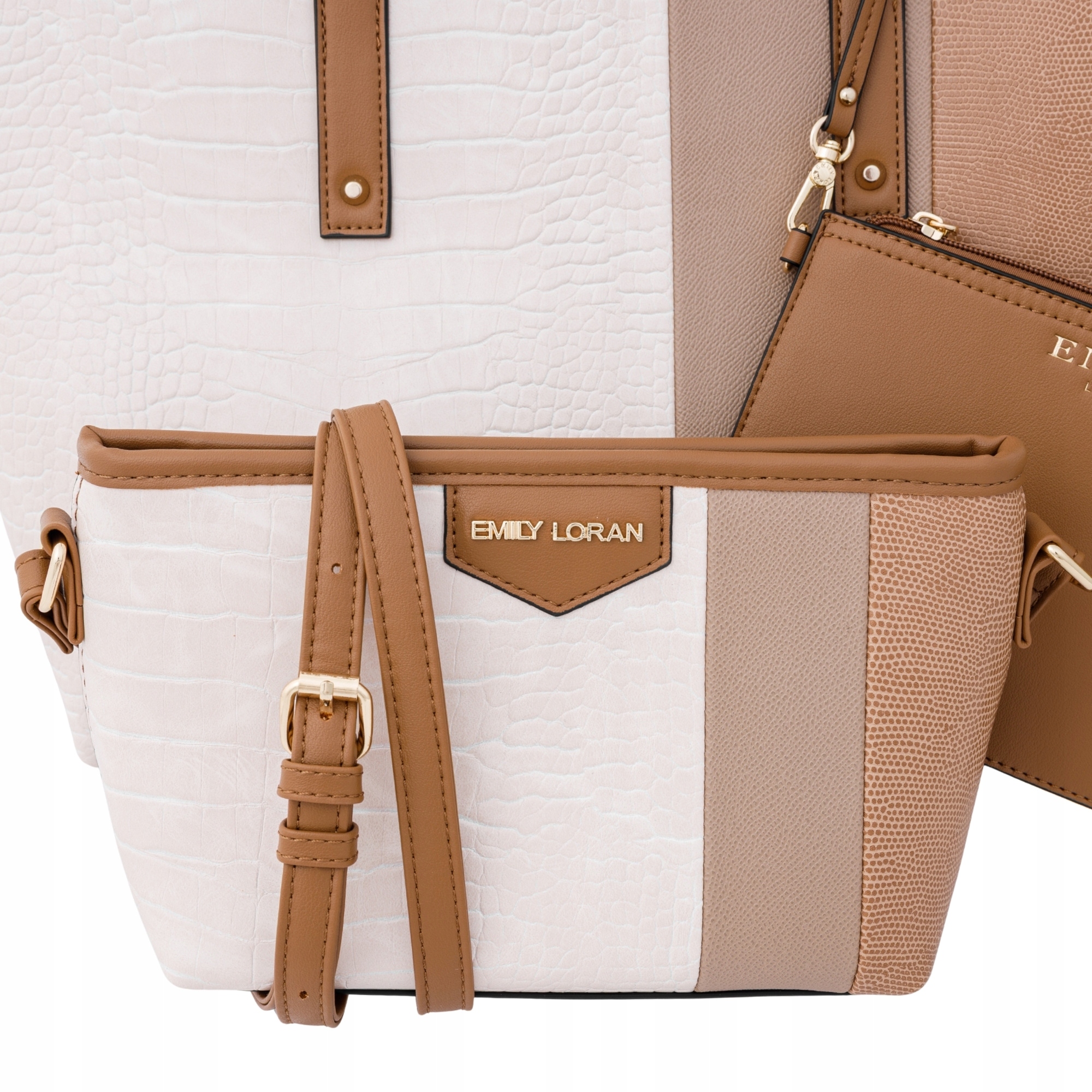 Emily Loran Damen 3-in-1 Handtaschen Set Beige und Braun Elegantes Set